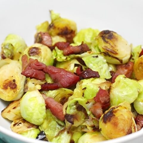 This recipe fries Brussels sprouts with salty pancetta or bacon for a quick, healthy side dish. Instead of boiling, the sprouts are sautéed until crisp, and the bacon adds savory richness that complements roasted meats.