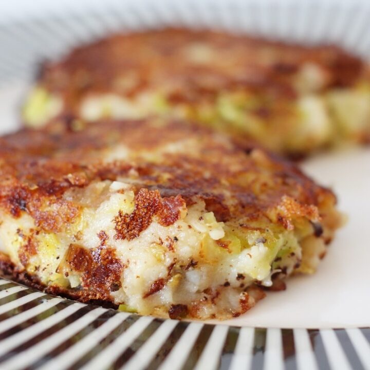 A twist on the British leftover dish, these bubble and squeak patties combine mashed potatoes with shredded Brussels sprouts instead of cabbage. Fried until crispy, they use up Christmas leftovers and provide a slightly bitter, crispy side or snack.
