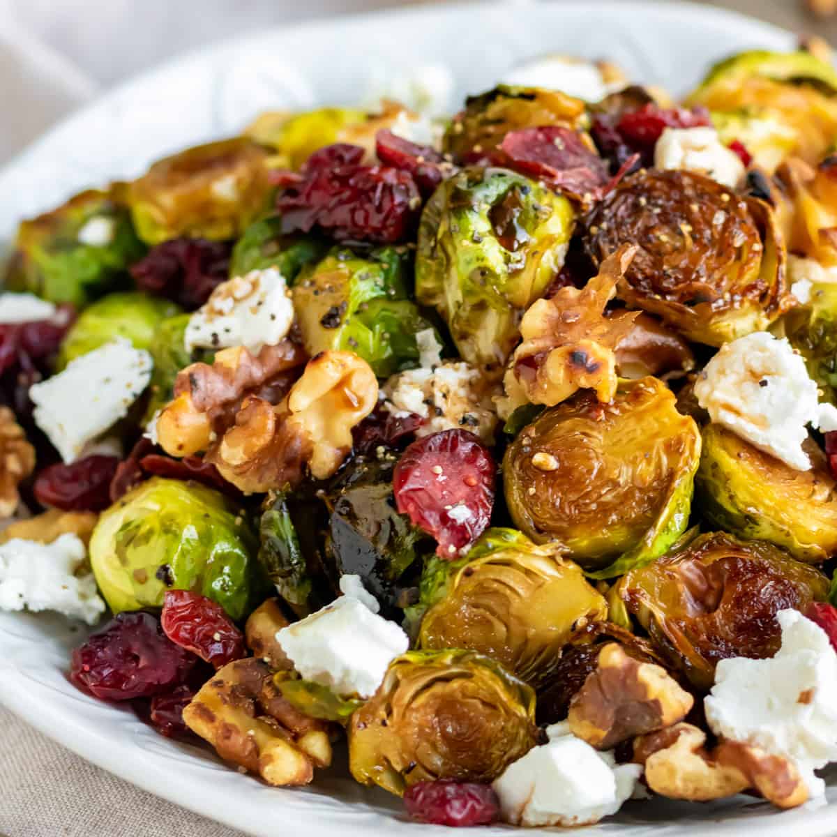 Roasted Brussels Sprouts with Goat Cheese, Walnuts and Cranberries
