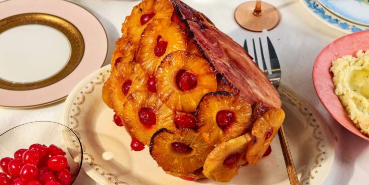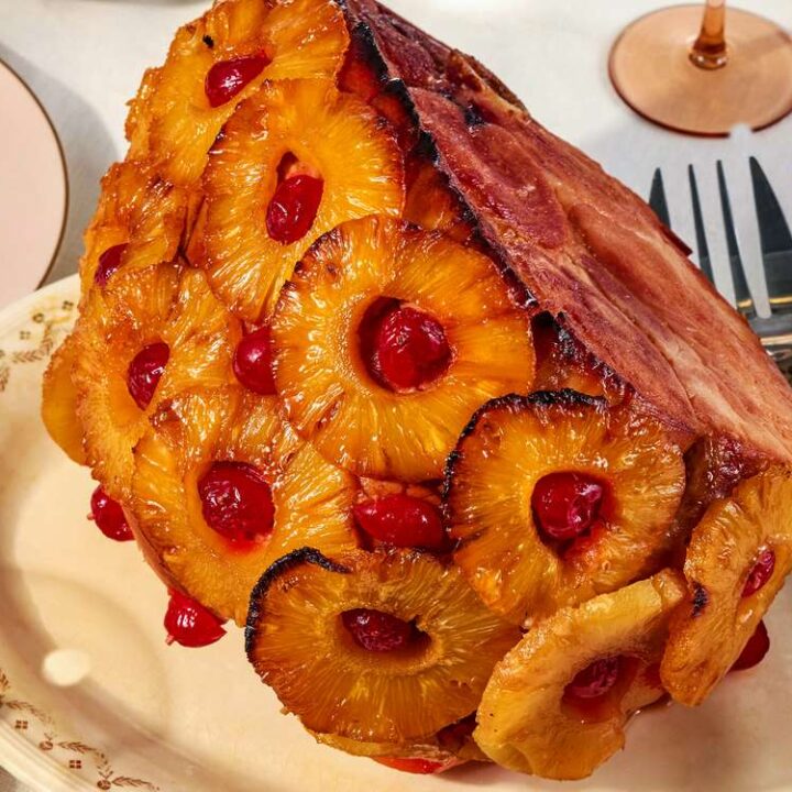 These Christmas ham recipes are all about rich flavor, sticky sweetness and that irresistible golden finish. Whether you like it baked, slow-cooked or infused with a hint of spice, each recipe promises a centerpiece that tastes as good as it looks. A boneless ham is first simmered until tender, then baked and basted with a honey, mustard and brown sugar glaze. The glaze turns crusty and sweet while keeping the ham juicy, making it an easy centrepiece for Christmas dinners with leftovers for sandwiches. Bone‑in ham baked with a sticky glaze of maple syrup, brown sugar, oranges and holiday spices like cinnamon and allspice. It’s an elegant yet simple recipe producing a moist ham with a subtle maple fragrance that makes a regal holiday centrepiece. This moist‑heat baked ham finishes with a high‑heat blast and a glaze of brown sugar, maple syrup and fresh orange juice. The glaze caramelises to a burnished crust while keeping the meat juicy, offering an effortless yet flavourful holiday main. A juicy ham brushed with a glaze of apple cider, maple syrup, brown sugar and warm spices including cinnamon, nutmeg, cloves and allspice. This easy recipe yields slices with a crispy, sticky edge and gentle warmth, making it the star of the table. A retro bake where a bone‑in ham is cooked in an oven bag with a glaze of maple syrup, orange juice, ginger ale, brown sugar and honey. Pineapple rings and maraschino cherries are pinned to the ham, creating a moist, fruit‑infused showpiece. This simple baked ham becomes moist and tender inside while the exterior is brushed with a caramelised brown sugar glaze. It’s a no‑fuss dish for special occasions, adding sweet flavour without overpowering the ham. A bone‑in ham baked in a sweet glaze of honey, brown sugar, butter and orange juice. Scoring the crust allows the glaze to seep in, creating a tender ham with a sticky, flavourful crust that looks impressive but is easy to make. A classic holiday ham topped with pineapple rings and cherries and coated with a glaze of pineapple juice, mustard, honey and brown sugar. The glaze creates a shiny, sticky finish with balanced sweet and savoury flavours, giving it a nostalgic look. A bone‑in ham warmed in a slow cooker with a glaze of Dr Pepper (or cola), brown sugar, mustard and vinegar. The slow cooking keeps the ham extra moist while the sweet‑tangy glaze creates a sticky finish, and it frees oven space during holiday cooking. A bone‑in ham slathered with a glaze of bourbon, maple syrup, dark brown sugar, Dijon mustard, Worcestershire and warm spices. The sweet‑savory glaze infuses the ham with bold flavours while keeping it tender and juicy for a standout main dish. A pre‑cooked boneless ham wrapped in foil and air‑fried while being basted with a maple‑bourbon glaze. Ready in under an hour, the ham emerges juicy and caramelised, saving oven space and offering easy cleanup with versatile leftovers. A ham rubbed with a homemade Cajun spice blend of brown sugar, garlic powder, oregano, thyme, paprika, cayenne and lemon peel. The sweet‑spicy rub creates a zesty alternative to traditional honey‑glazed ham, and a drizzle of maple syrup balances the heat. A festive ham marinated with ginger, garlic, Chinese five‑spice, allspice and spiced rum, then baked with a glaze of dark cherry jam, brown sugar, cherry juice, soy sauce and star anise. Marinating overnight produces a sticky, spiced centrepiece with deep cherry‑rum flavour.Christmas Ham Recipes