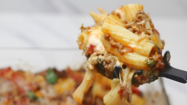 Ziti pasta is tossed in a homemade bolognese tomato sauce, then layered withcheese before baking. The extra sauce keeps the casserole moist, and the dish can be assembled ahead and baked just before serving.