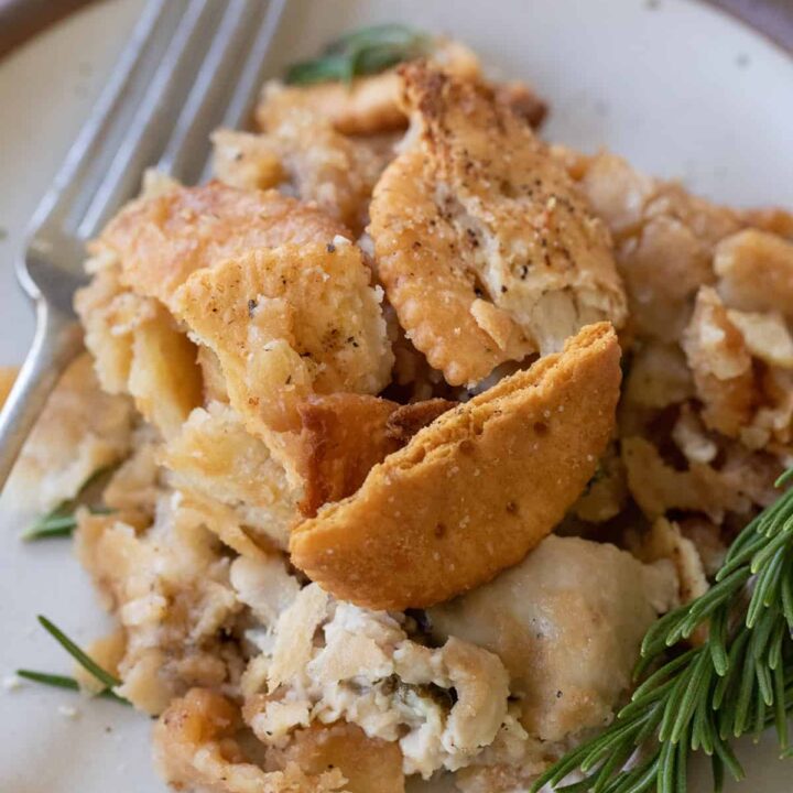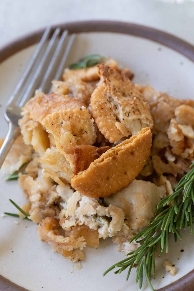 A rich, layered stuffing of whole oysters and crushed Ritz crackers baked with butter, milk and herbs for a savoury side with a hint of the sea, perfect for seafood lovers.