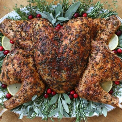 Herb-Stuffed Roasted Spatchcock Turkey