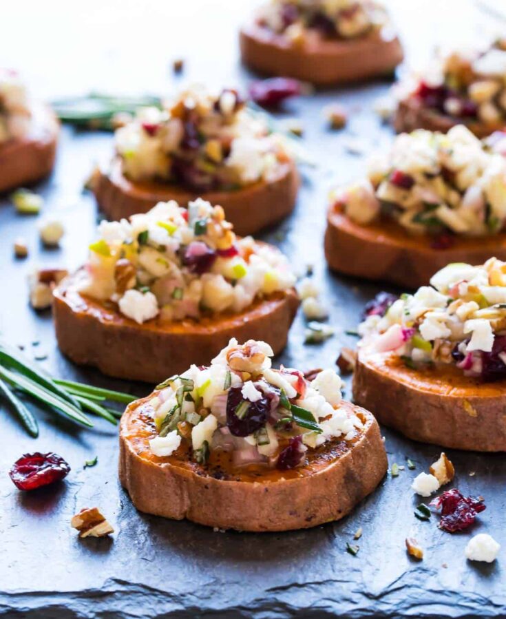 Sweet Potato Rounds with Goat Cheese Cranberry and Pecans